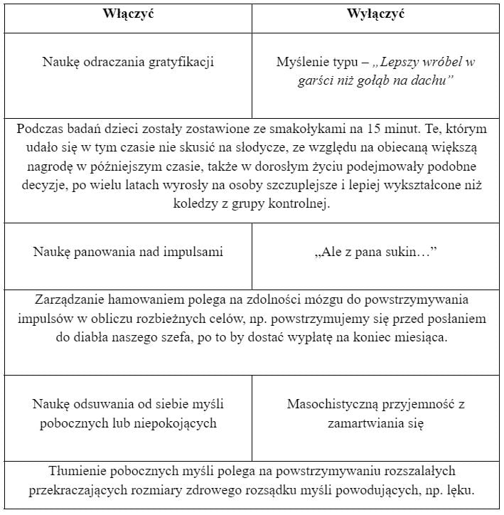 Nie podlegamy z góry ustalonemu losowi, nie jesteśmy niewolnikami swojego charakteru ani okoliczności. Nasze mózgi mogą same ustanowić parametry kontroli poznawczej. Możemy: