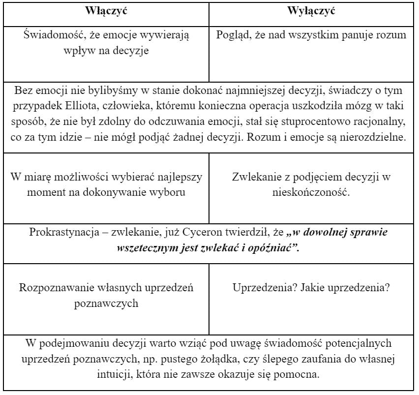 | Silniejsze doświadczenia emocjonalne, trwalsza pamięć. | Przecenianie własnych możliwości. |